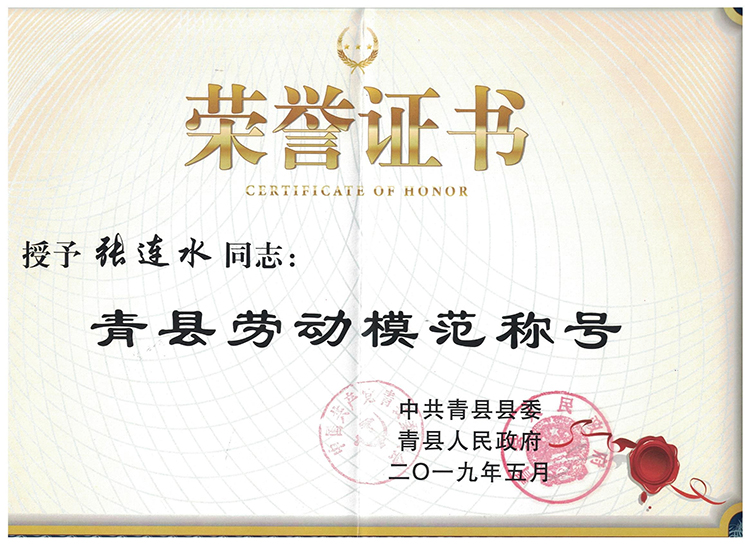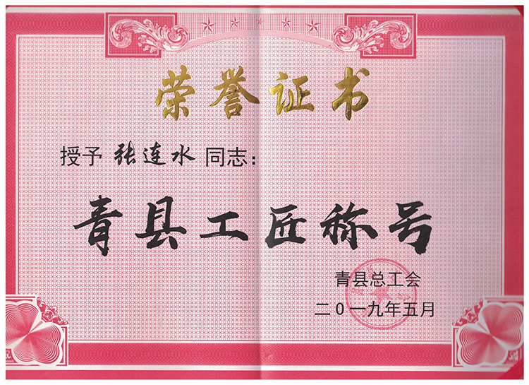 2013年以來,全縣各族人民深入貫徹落實習近平新時代中國(guó)特色社會主義思(sī)想和(hé)黨的十九(jiǔ)大及十九屆二中、三中全會精神(shén),積極投身(shēn)到加(jiā)快建設創新驅動經濟強縣的偉(wěi)大事業中,在推進轉(zhuǎn)型發展、脫貧攻堅、同步(bù)小康進程等(děng)各條(tiáo)戰線上,湧(yǒng)現出一大批品(pǐn)德高尚、愛崗敬業、業(yè)務精湛、貢(gòng)獻突出的先進模範人物。為(wéi)弘揚先進模範人(rén)物的時代精神,凝聚和傳播正能量,縣(xiàn)委(wěi)、縣政府(fǔ)決定,授予張連水同(tóng)誌“青縣勞動模範”和“青縣工匠”稱號(hào)。